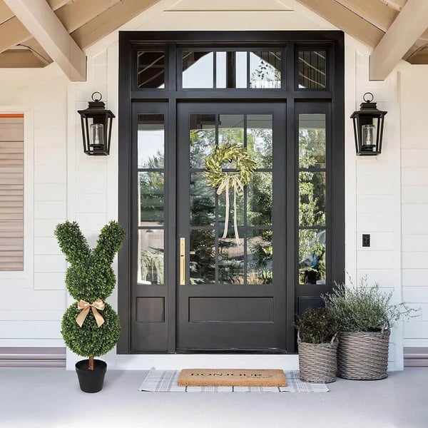 Elevate your Easter decor with charming artificial bunny-Shaped Topiary Trees. Complete with playful swaying ears and a chic brown bow tie. these artificial boxwood topiary trees add a touch of fun and sophistication to any space.